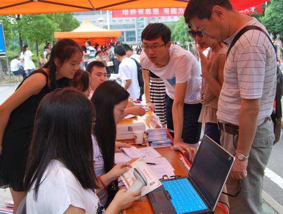 图为新生报道现场