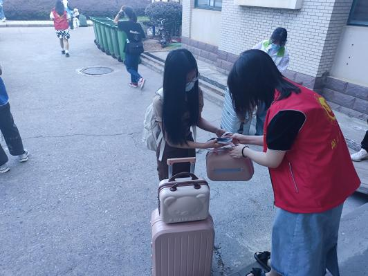 志愿帮扶,提供一站式入学服务。学院组织学生党员、学生干部成立志愿服务团,做好迎新的策划和统筹工作,通过线上线下双向联动,为新生入学提供全方位的帮扶引导。9月3日上午8点,早早在新生宿舍楼下集合完毕的志愿者们,迎来了学院第一批到校新生。志愿者积极协助新生完成身份核验、办理宿舍入住手续,帮助运送大件行李物品并,并耐心为新生答疑解惑。