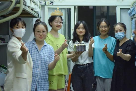共庆生日,留下就读经院的独家记忆。得知新生报到当天正是新闻2243班孙佳悦同学的18岁生日,两天后又是其室友宋果果同学的生日后,党委书记周志荣和辅导员周岚代表学院来到该寝室,送来精心准备的生日蛋糕、月饼和水果,带来生日祝福和中秋问候,将学院的暖心关怀传递给初入经院的新同学们。