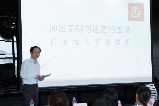 上午的活动包括主题报告和分组讨论。陈建华老师与刘芝庆老师的“拥抱大时代—家国情怀与青年成长”;谷羽老师的 “从手机辨别学霸与学渣—信息素养与专业发展”;汤中秋老师的“如何冲出无聊与迷茫的围城--信仰与青年发展”;徐浪老师的“聊聊心事--心理素养与青年发展”;徐勇老师的“大众文化传播:符号学与精神分析--深度思考与青年发展”,共五场主题报告拉开了论坛序幕。报告结束后,主讲老师分别带领一组与会学生开展主题讨论,并形成了小组观点。