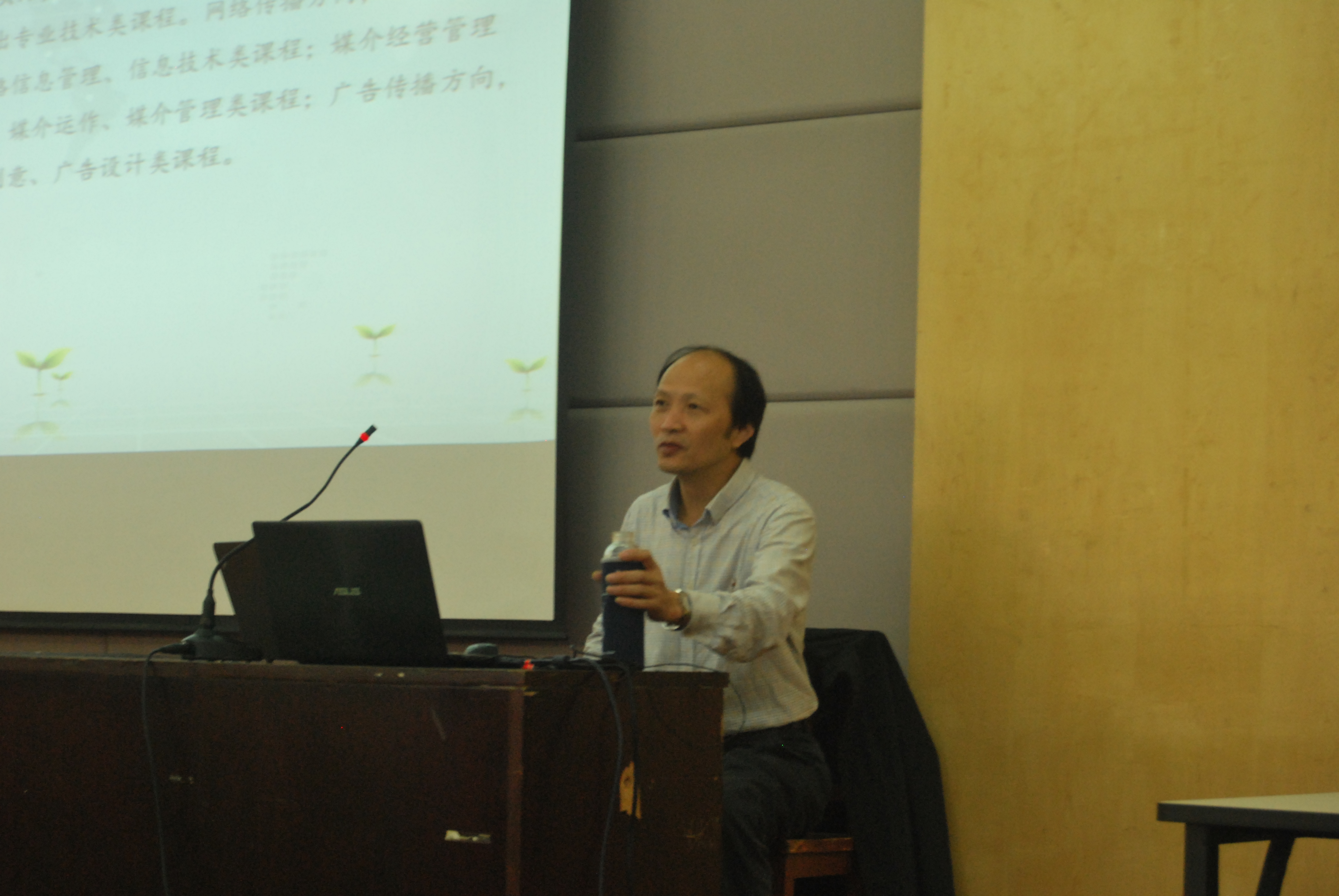讲座第一部分,王远坤院长对大一新生对新闻专业的不理解以及对就业方向的迷茫,做了针对性阐述。他说,“专业没有好坏之分,只要你爱它,努力去学它,就能成功”,并强调新生不要只把眼睛盯着热门专业,风水轮流转,今日的王牌可能在你毕业时变得不再王牌,你今日不能理解的新闻专业就是将来建设文化强国的王牌!接着,他用PPT的形式将改革开放以来新闻专业的发展情况(发展速度,就业率等)展示出来,一张张分析图表让同学们对本专业多了一分理解。之后,他列举了一些开设新闻专业的名校,并将我校与其相论,并指出我校学子在校外交谈时要能够大声喊出“我是太阳集团2138的!”意在树立新生的自信心及自豪感,从而进一步激发新生学习新闻专业的热情。最后,王院长就专业现状对就业前景做了相关评估