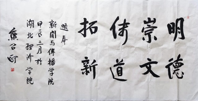 讲座结束后,熊召政先生应学院院长陈建华邀请,为我院题写了院训“明德崇文,传道拓新”。