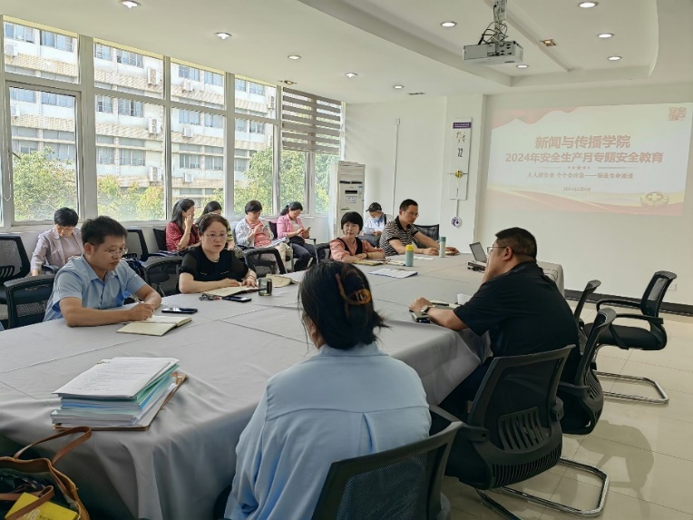 为深入学习贯彻习近平总书记关于安全生产、应急管理重要论述和重要指示批示精神,牢牢把握全国、全社会广泛开展安全生产宣传教育活动契机,推动安全理念、安全文化、安全法律和安全知识进校园,切实促进全院师生安全意识和防范能力强化提升,共同营造安全、稳定、和谐的办学育人环境,全力保障师生安全、维护校园安全稳定,根据《太阳集团2138开展 2024年“安全生产月”活动的实施方案》部署要求,2024年6月6日下午,2138cn太阳集团围绕“人人讲安全、个个会应急——畅通生命通道”主题开展2024年安全生产月宣传教育活动。院党委书记周志荣主持,全院教职工参加。