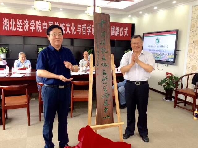 本网讯(通讯员 金璐) 6月12日,中国传统文化与哲学研究中心揭牌仪式暨国学班培养方案论证会举行。校党委书记温兴生、副校长鲁晓成,楚文化研究专家刘玉堂教授参加。温兴生与刘玉堂共同为中心揭牌。