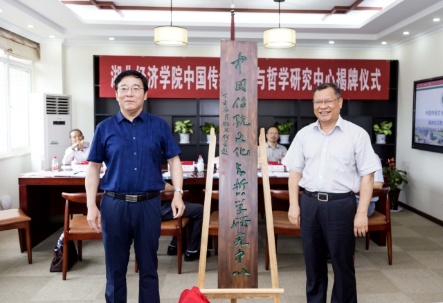 本网讯 6月12日,中国传统文化与哲学研究中心揭牌仪式暨国学班培养方案论证会在学院研讨室举行。校党委书记温兴生、副校长鲁晓成,中心学术顾问江畅教授、刘玉堂教授、王兆鹏教授、郑传寅教授出席会议。温兴生与刘玉堂共同为中心揭牌。