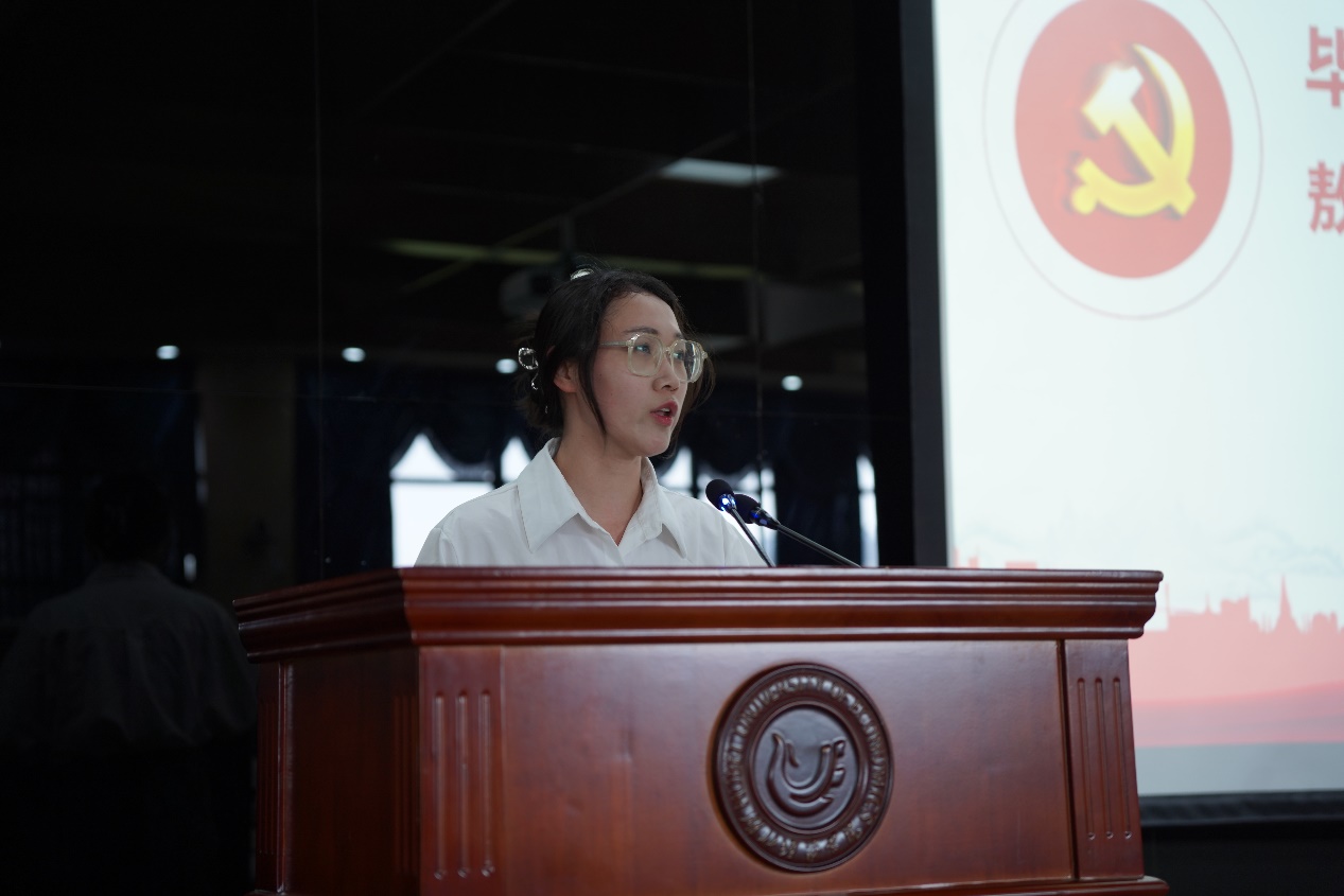 毕业生党员代表敖珺怡作赠言交流