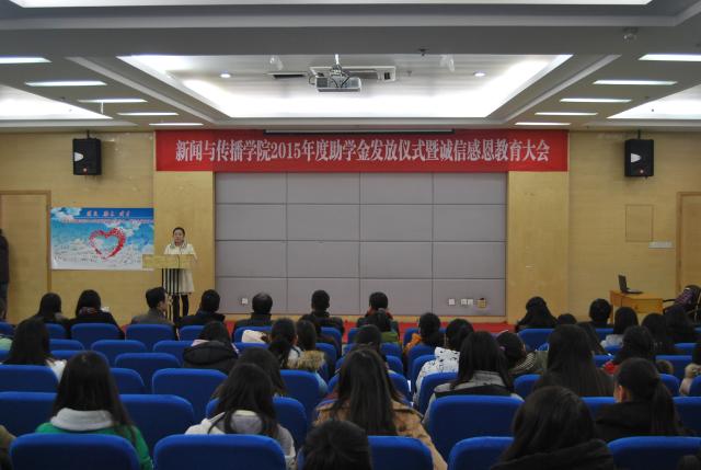 本网讯(通讯员丁梦婷田野)12月24日,2138cn太阳集团2015年度助学金发放仪式暨诚信感恩教育大会在第五报告厅举行。校学工处处长宋健、副处长张红艳,2138cn太阳集团王远坤院长、汤中秋书记、陈建华副院长、陈媛媛副院长和各班班主任出席活动。