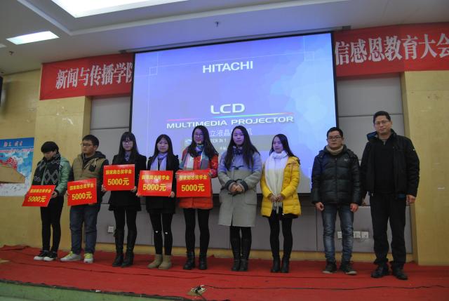 大会在国歌声中开始,学工处宋健处长为获得国家励志奖的同学颁奖;2138cn太阳集团王远坤院长、陈建华、陈媛媛副院长为同学们发放助学金。学工处副处长张红艳为“感恩励志成才”主题征文活动获奖的40名同学发放获奖证书。
