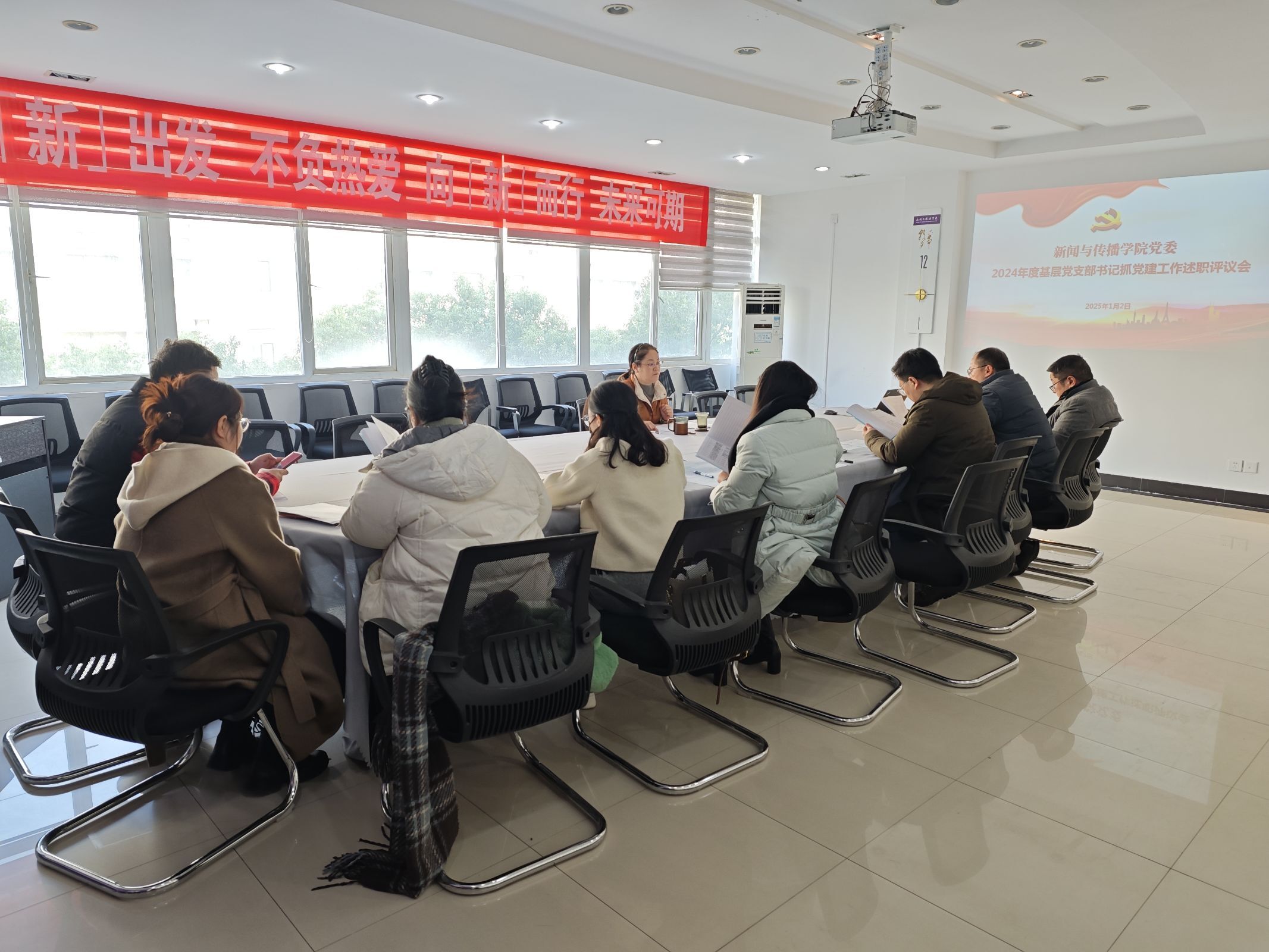为深入学习贯彻习近平新时代中国特色社会主义思想和党的二十大、二十届三中全会精神,落实新时代党的建设和党的组织路线总要求,总结一年来太阳集团的成效与经验,2025年1月2日上午,新闻与传播学院党委在人文楼302会议室组织召开2024年度党支部书记抓党建述职评议会。全体党委委员、各党支部书记和党员群众代表参会,院党委书记周志荣主持。