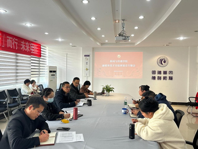 本网讯 2月27日下午,按照学校新学期教学例会对实验班建设考核的要求,我院举行本学期第一次融媒体优才实验班建设专题会,副院长陈奕主持,院长陈建华、院党委书记周志荣、院党委副书记孙彦波、副院长王世立以及学院教师代表参加。