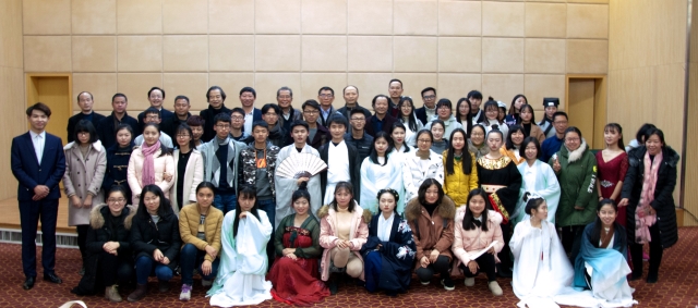 本网讯(通讯员刘雨竹)12月21日,我校首届国学班开班典礼暨传统诗文吟诵大赛在学校国际学术会议中心举行。学校副校长鲁晓成教授、学校中国传统文化与哲学研究中心学术顾问王兆鹏教授、吴琦幸教授出席活动,副校长何慧刚在开班典礼上致辞,国学班部分导师出席活动并担任吟诵大赛评委。