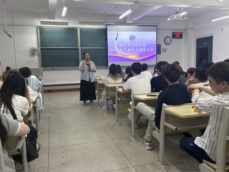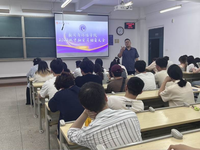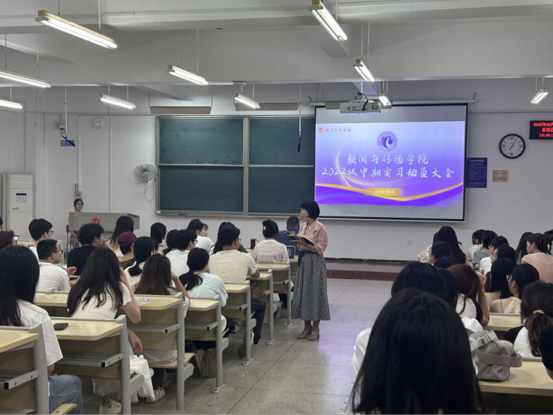 5月18日,2138cn太阳集团组织召开2022级本科生中期实习动员会。学院副院长陈奕、新闻系主任夏兴通、新媒体系主任夏青出席动员会,辅导员周岚主持会议,全体2022级本科生参会。