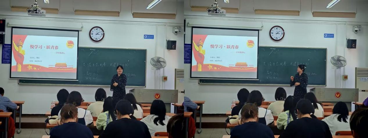 (院团委书记周岚在新闻学2443团支部开展“悦学习·跃青春——青年微讲坛”活动)