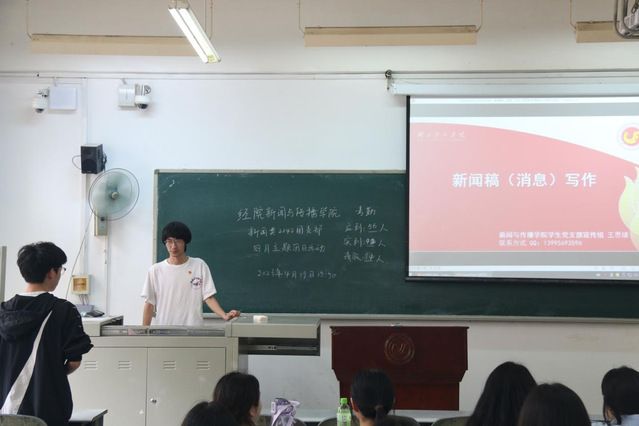 4月6日,我院联合统计与数学学院共同开展青年团员骨干学习党的二十大精神交流活动,学生党支部党员王思绪受邀作专题宣讲。他和大家共同学习领会习近平总书记在二十大报告中作出“加强全媒体传播体系建设,塑造主流舆论新格局”重要部署要求;结合专业学习号召广大新传学子握好笔杆子,深入基层去,努力锻炼提升脚力、眼力、脑力、笔力,用心用情用力做出好作品;通过实际案例分享“倒金字塔结构”在新闻写作中具体运用,帮助引导大家加快学用转化,促进学用结合,达到学以致用。