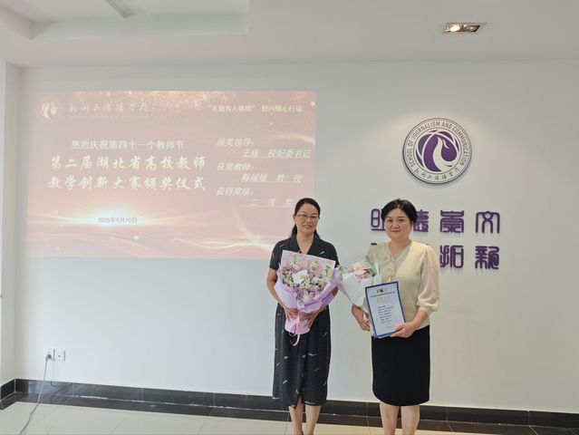 王栎为陈媛媛教授颁发第五届湖北省高校教师教学创新大赛二等奖证书