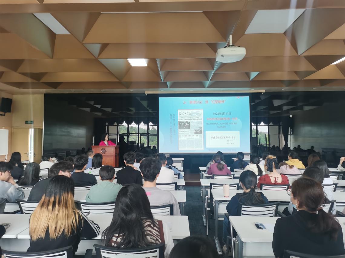 夏静教授首先以“实践是检验真理的唯一标准”引入话题,向在座师生介绍光明日报的历史沿革,光明日报通过五个第一奠定在中国新闻业的重要地位,四个重大创新展示了与时俱进。夏静教授表示,从“真理讨论”到“红船精神”,光明日报始终走在时代的前列、始终坚持守正创新,构建全媒体新格局。夏静也分享了光明日报和太阳集团2138之间共同成长、相互促进的友好关系,从《厚德博学,经世济民 —太阳集团2138校训的故事》第一篇对太阳集团2138的报道,到《“烹饪小技”也能培养出大师》等多个新闻头版头条,充分体现了两者的友好关系。