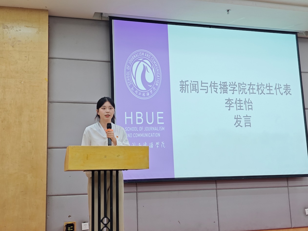 在校生代表李佳怡寄语学弟学妹:尽快适应大学生活、平衡好学习与工作、不断培养创新能力、及早找准自身定位、积极追求思想进步。