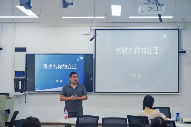 本网讯 2023年5月27日下午,我校财政与公共管理学院李波副教授在教二203为“国学智慧与现代经管”微专业的同学进行了“税收名称的变迁”专题讲座。