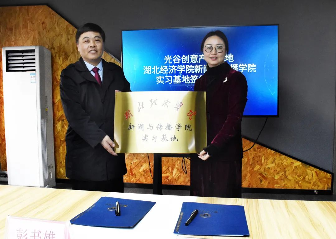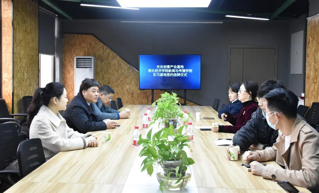 4月7日,我院与光谷创意产业基地实习基地挂牌仪式,在光谷创意产业基地会议室举行。学院副院长彭书雄教授、武汉光谷创意产业基地建设投资有限公司总经理董思艺女士、学院新闻系主任夏兴通老师、学院实验室主任毛冷蕊老师出席本次签约仪式。