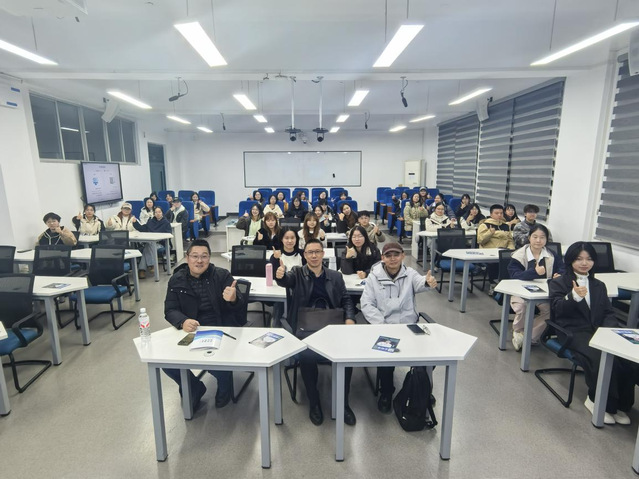 讲座尾声的互动答疑环节氛围热烈,针对学子提出的融合报道策划、技术应用等疑问,陈教授结合自身50余次斩获湖北新闻奖的从业经验逐一细致解答,给出切实可行的指导。他以“这是媒体融合发展最好的时代,让我们一起向未来”的寄语收尾,引发全场共鸣。整场讲座案例鲜活、观点鲜明,既贴合实验班的人才培养定位,又为新闻学子明晰成长方向、提升专业素养提供了重要指引。讲座结束后,师生与陈教授合影留念,共同见证此次交流活动圆满落幕。