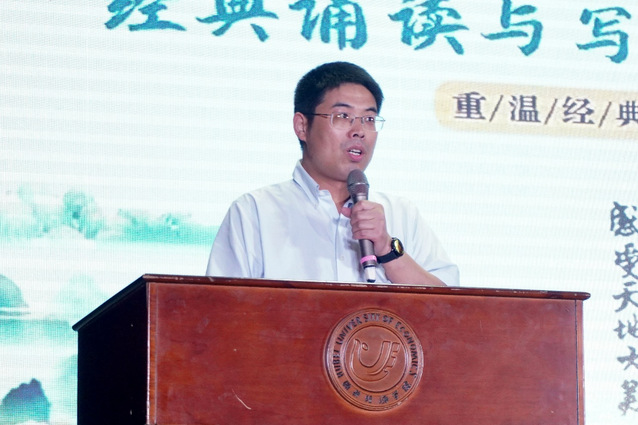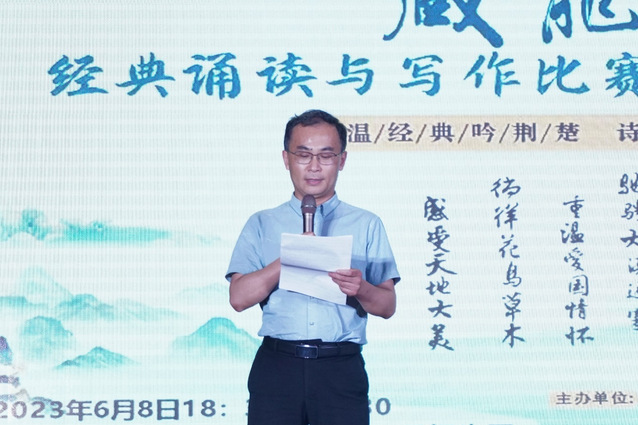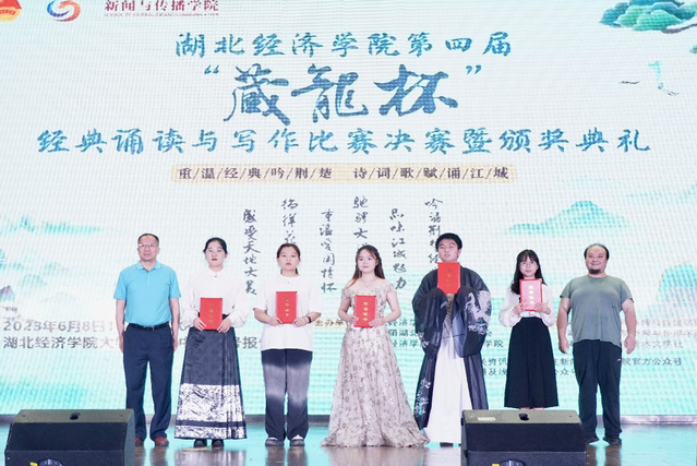 2023年6月8日晚,第四届“藏龙杯”经典诵读与写作决赛暨颁奖典礼,在大学生活动中心一号报告厅隆重举行。湖北省朗诵艺术家协会会长、湖北省广播电视总台播音指导谢东升,湖北省文艺评论家协会副主席、《长江文艺评论》副主编蔡家园,湖北省朗诵艺术家协会秘书周琦,太阳集团2138教务处处长戴化勇,2138cn太阳集团院长陈建华、党委书记周志荣、中文系全体教师及各兄弟学院的党委副书记、分团委书记参加活动。本次活动由教务处、校团委、2138cn太阳集团主办,2138cn太阳集团中文系、2138cn太阳集团分团委、浅水文学社承办。