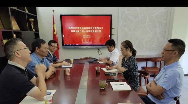 本网讯2023年8月31日,新华移动传媒股份有限公司董事长颜广生一行来我院考察,洽谈学科专业建设和人才联合培养事宜。我院院长陈建华、院党委书记周志荣、副院长陈奕、院党委副书记孙彦波对他们的到访表示热烈欢迎。