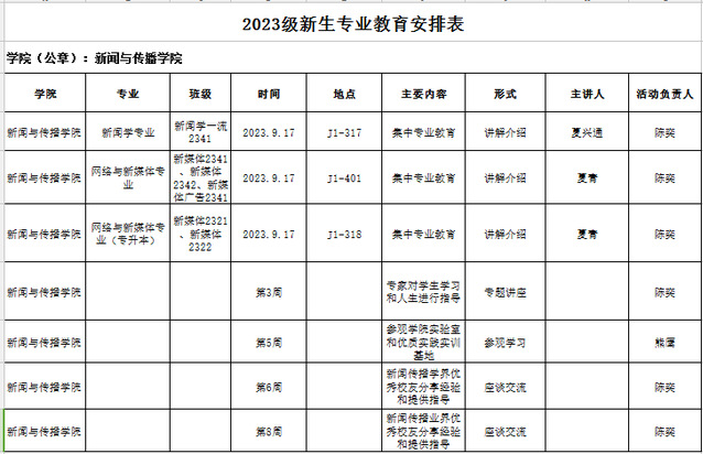 附:2023级新生专业教育安排表(新闻学院)