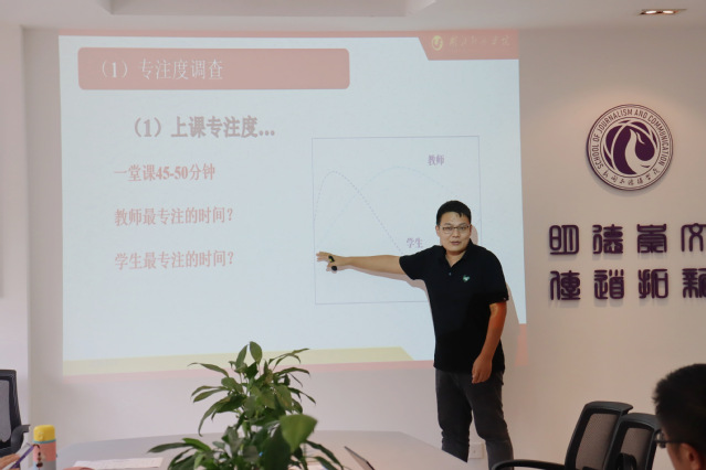 本网讯 9月28日下午,为帮助老师们准备我校2023年教师教学竞赛暨第四届湖北省高校教师教学创新大赛校赛,提升教学能力、增强学生上课专注度,我院开展“BOPPPS”有效教学结构培训,邀请杨帅博士分享相关理论与实践经验。活动由副院长陈奕主持,全院30余位中青年老师参加。