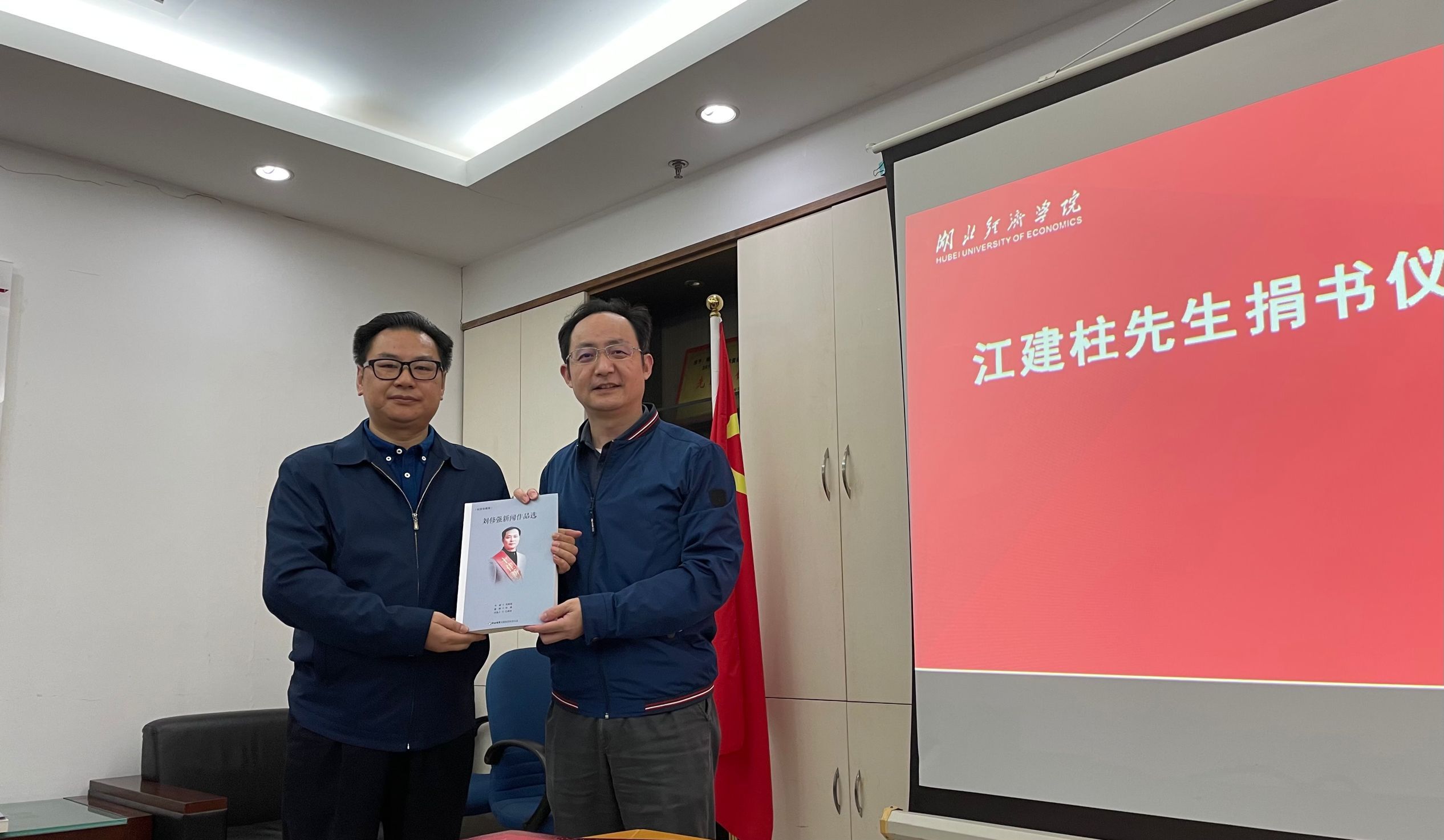 捐赠仪式上,汤中秋书记代表学院接受了江先生捐赠的《刘修强新闻作品选》。汤书记指出,该作品集吸纳了大量生动、鲜活的新闻作品,作品形式多样、题材丰富,且贴近一线新闻采访工作,为我院新闻专业师生提供了教学研究的案例,对我院学生学习、掌握新闻采访和写作技巧具有积极作用。汤书记向江先生的热心捐赠表示感谢,并为其颁发捐赠证书。