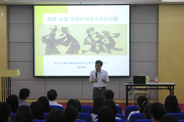 本报讯(通讯员 刘飞飞 田野)5月11日晚,中山大学中国非物质文化遗产研究中心主任康保成教授莅临我校,为师生们主讲《我国‘非遗’的保护现状及存在问题》学术报告。新闻传播学院副院长陈建华主持,新闻、艺术、旅游等相关专业教师出席。