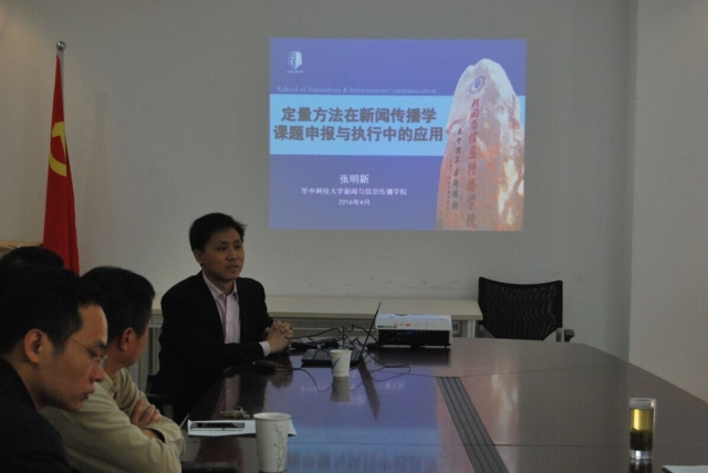 华中科技大学信息传播学院博士生导师张明新教授应我院邀请,于4月21日下午在我院会议室与老师们进行了学术交流活动。活动由陈建华副院长主持、王远坤院长、各教研室主任以及青年教师们参加了活动。