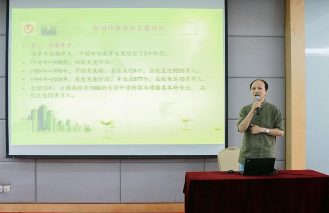 王远坤院长随后具体向新生们讲解了新闻传播专业发展现状与人才需求。他从新闻传播专业发展现状、我院基本情况以及发展思路等方面展开,指出新闻传播专业发展前景良好,专业人才需要量巨大,但同学们需要提升自身专业素质,做一专多能的人才。学院一直以学生发展为中心,要求学生有“学习之勤奋精神,做人之崇高精神,创业之悲剧精神”,并通过多种途径和方式给予教育、引导,使学生避免出现“小我大,大我小”的现象。