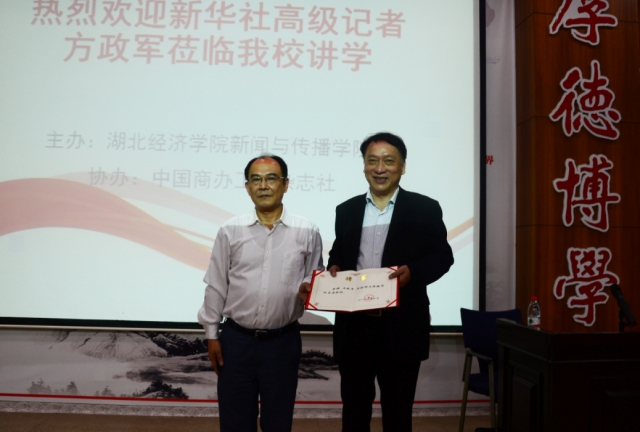 本网讯 10月20日,在第17个中国记者节即将来临之际,应学院邀请,新华社高级记者方政军受聘我院客座教授,并做客我校“藏龙讲坛”。方教授结合自己几十年的新闻记者生涯,为我校师生讲述转型期媒体的发展趋势和记者的社会责任,指出新媒体时代新闻工作者的社会责任不是削弱了,而是更重了。
