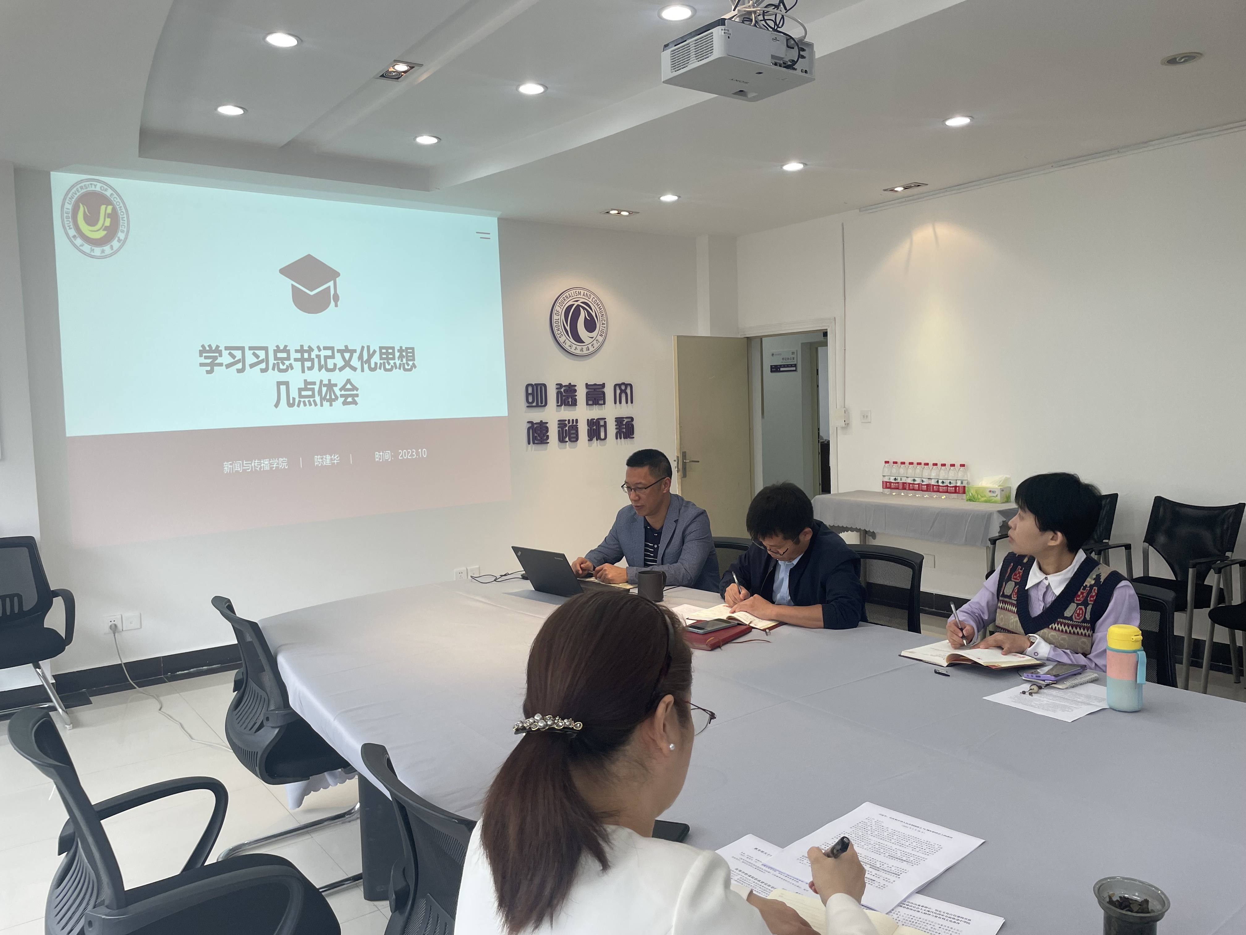 院长陈建华围绕“深入学习贯彻习近平总书记对宣传思想文化工作重要指示精神,深刻学习领会习近平文化思想,切实担负起新时代新的文化使命”主题,从习近平文化思想形成过程、习近平总书记的文化情结、习近平总书记重要指示精神为新闻传播教育事业指明发展方向三个方面作领学辅导。陈建华强调,要深刻认识宣传思想文化工作事关党的前途命运、事关国家长治久安、事关民族凝聚力和向心力这一重大现实意义和深远历史意义,要深刻把握习近平文化思想的丰富内涵、核心要义,要自觉坚持把习近平总书记对宣传思想文化工作提出“七个着力”明确要求,作为学院推进学科建设、组织科学研究、实施人才培养、谋划推进“新财经”改革的行动指南。要提高政治站位、增强政治自觉,坚决担负起新的文化使命,做好新时代新征程上新闻传播后备人才培养工作,切实践行主动融入、积极服务文化强国建设职责使命,实干笃行、奋楫争先,努力开创学院事业发展新局面。