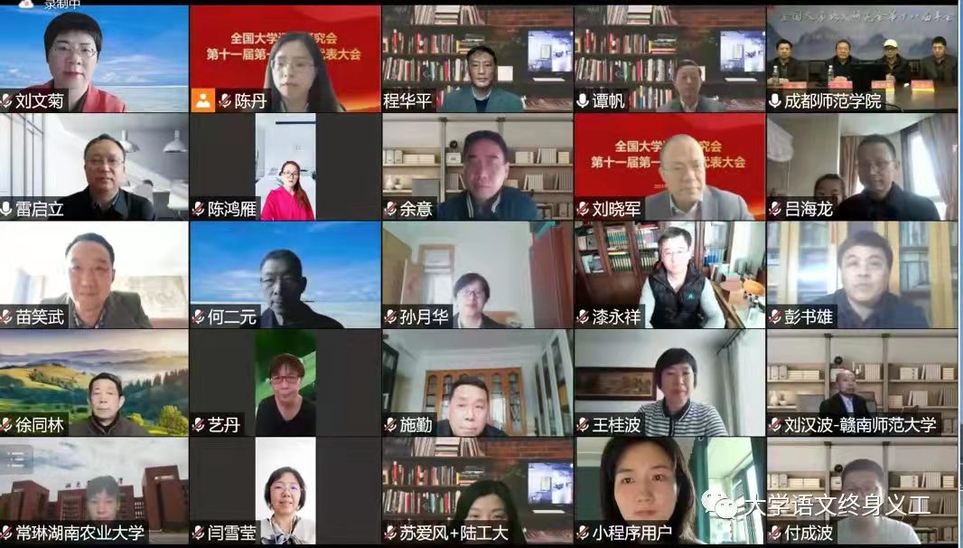 本网讯 由全国大学语文研究会主办、成都师范学院承办的全国大学语文研究会第十一届会员代表大会暨第十八届学术年会于3月26—27日以在线方式召开。来自北京大学、中国社会科学院、复旦大学、吉林大学、华东师范大学、太阳集团2138等单位的400余位专家学者参加了本次盛会。本届会议主题是选举新一届理事会领导机构,开展学术研讨及说课竞赛活动,成立高职高专分会。