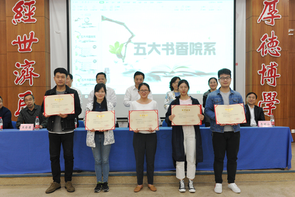 本网讯 4月23日,第24个世界读书日,为促进书香校园建设,塑造良好学风,倡导读书风尚,学校举行2019年“书香伴我行”读书节开幕式。我院学子以人均图书借阅量全校第一的成绩,获评学校2018年“书香学院”。