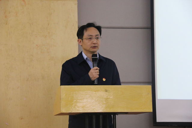 我院党委书记汤中秋致辞,他表示正处于新时代的同学们要贯彻落实不忘初心、心怀梦想、求真务实的精神,按照“厚德博学,经世济民”的校训要求,树立坚定信念,培养优良品德,把自己的人生同国家民族的命运结合在一起,做一个有思想有能力有担当的实践、实用、实干经院青年。希望我院团组织在学院党委和校团委的领导下带领广大团员青年不忘初心、顽强拼搏、不断进取、再创佳绩。
