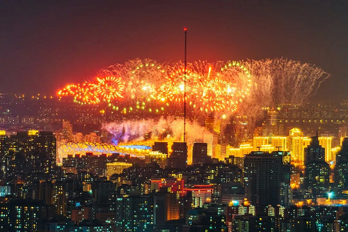 图为龙世杰同学拍摄冬奥烟花当日场景