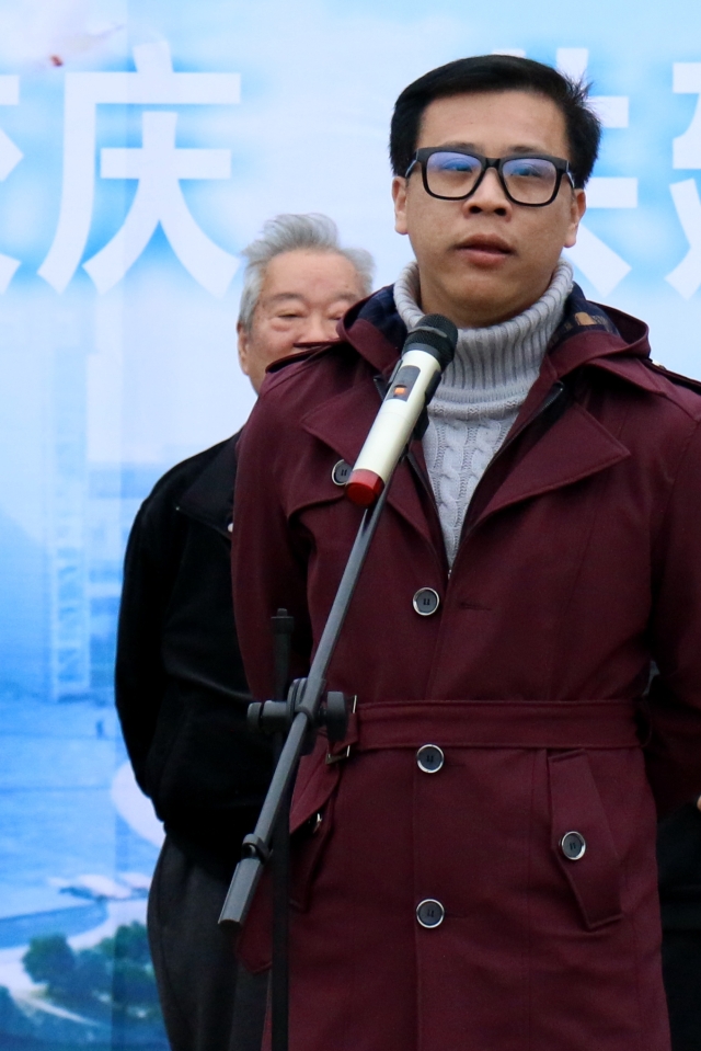 我院刘芝庆博士作为台湾籍教师代表发言,他感谢经院给予台湾籍教师工作和发展机会,校友林从栽种到茁壮成长,也是经院师生和学校共同的成长,祝愿栽种的树木越长越高,经院的明天会更好。