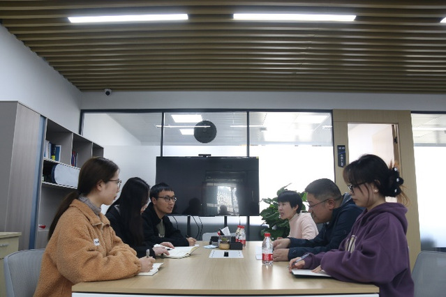 调研人员参观了研究中心的办公区,了解研究中心的发展历程和业务情况,并重点检查了新闻学专业2041班刘紫悦及新媒体专业2042班姜梦娜的毕业实习开展情况,与校外指导教师雷紫雯和李伟庆进行了座谈。会上,陈奕副院长介绍了我院专业发展情况以及人才培养特色,两位指导老师对我院实习生的工作能力和表现进行了充分肯定,并希望学院加强学生在写作能力和沟通能力上的锻炼提高。