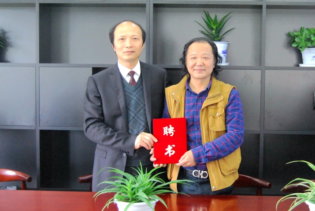 图为院长王远坤教授为魏开功先生(右)颁发客座教授聘书