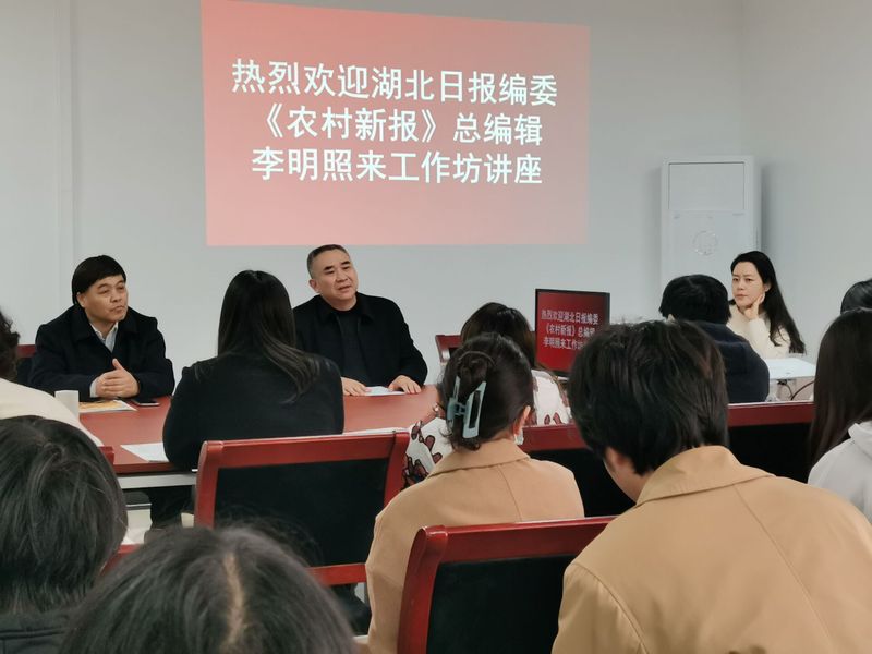 (本网讯)12月9日下午,应我院邀请,湖北日报编委、《农村新报》总编辑李明照为我院工作坊做媒体人经验交流讲座,与同学们分享最前沿的业界资讯,帮助大家更好地将理论与实践结合。